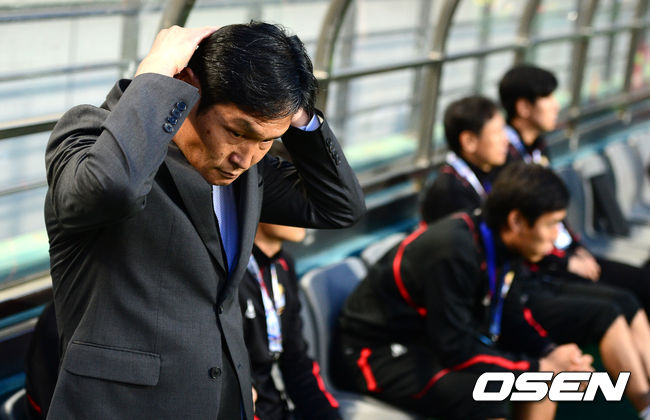 경기에 앞서 ,FC서울 최용수 감독이 머리를 만지며 생각에 잠겨 있다. /jpnews@osen.co.kr