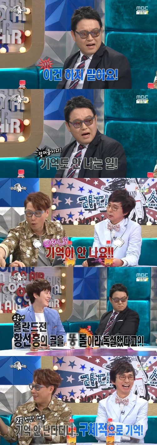 이에 “2002년은 기억이 안 나”라고 했던 김구라는 “이게 왜곡이다. 헛발질을 향한 독설이었을거다. 어떻게 골을 넣었는데 똥볼이라고 했겠느냐”고 속사포 변명해 웃음을 자아냈다.