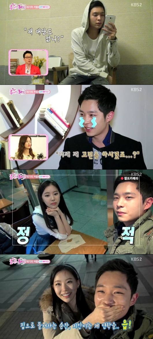 박종찬은 14일 오후 11시 10분 방송된 KBS 2TV '두근두근 로맨스 30일'에서 연애 상대인 여대생 김지안의 뜸한 연락에 고민을 거듭했다.