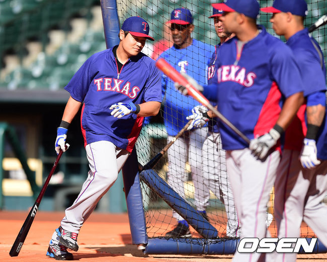 15일(이하 한국시각) 미국 텍사스주 휴스턴 미닛 메이드 파크에서 열리는 '2014 메이저리그' 휴스턴 애스트로스와 텍사스 레인저스의 경기 시작전 추신수가 배팅 훈련을 하고 있다.