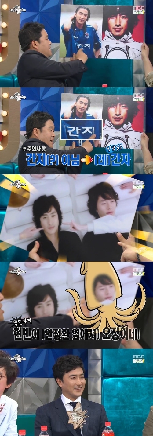 이날 현빈과 안정환의 과거 광고 사진을 접한 김구라는 “안정환 옆에 있으니 현빈이 오징어다. 안정환씨가 훨씬 나아”라고 말해 모두를 폭소케 했다.