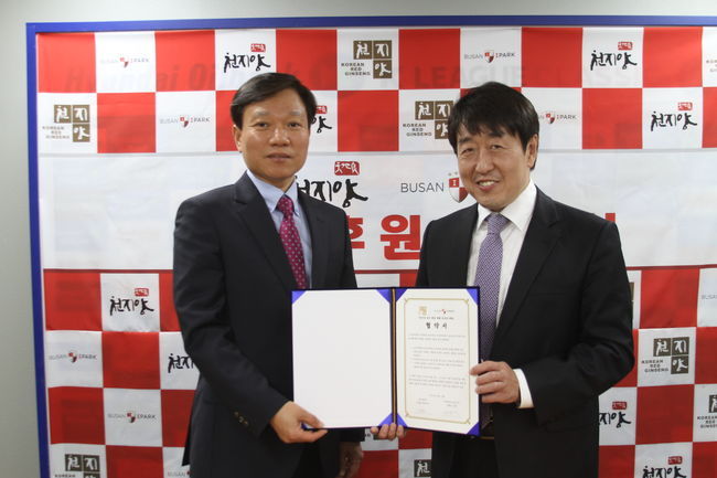 부산 아이파크가 홍삼 건강 기능 식품 명가인 천지양과 후원협약을 맺었다.