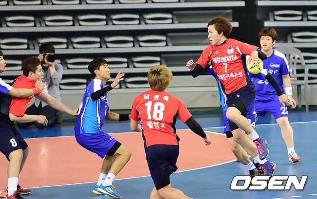 15일 오후 서울 방이동 SK핸드볼경기장에서 '2014 SK 핸드볼코리아리그' 남자부 챔피언결정전 웰컴론과 두산의 경기가 열렸다.
