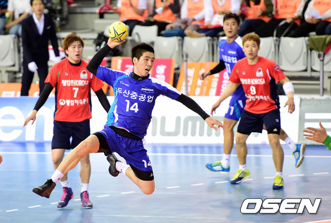 15일 오후 서울 방이동 SK핸드볼경기장에서 '2014 SK 핸드볼코리아리그' 남자부 챔피언결정전 웰컴론과 두산의 경기가 열렸다.