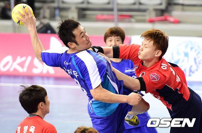 15일 오후 서울 방이동 SK핸드볼경기장에서 '2014 SK 핸드볼코리아리그' 남자부 챔피언결정전 웰컴론과 두산의 경기가 열렸다.
