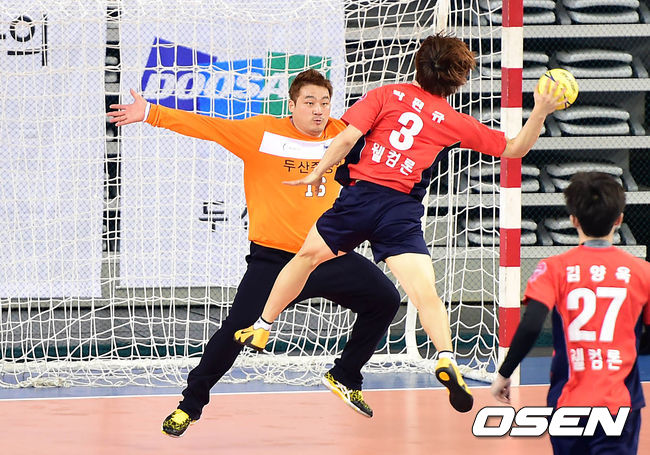 15일 오후 서울 방이동 SK핸드볼경기장에서 '2014 SK 핸드볼코리아리그' 남자부 챔피언결정전 웰컴론과 두산의 경기가 열렸다.