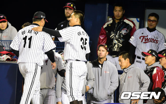 5회초 2사 2,3루에서 LG 류제국이 강판당하고 있다.