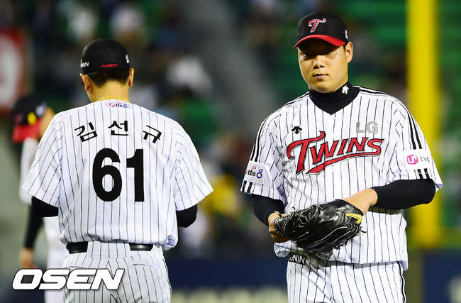 5회초 2사 2,3루에서 LG 류제국이 강판당하고 있다.