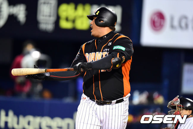 5회초 1사 만루에서 롯데 최준석이 삼진을 당하며 아쉬워하고 있다.