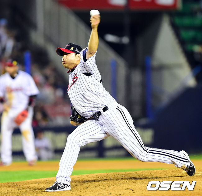 7회초 LG 신재웅이 힘차게 역투하고 있다.