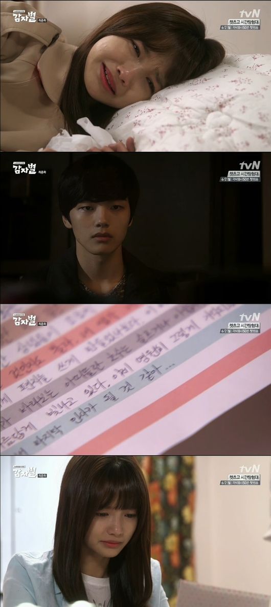 ‘감자별’ 여진구가 하연수에게 두 번째 편지를 보냈다. ‘마지막 인사’라고 쓰인 편지를 읽으며 하연수는 또 다시 눈물을 떨어뜨렸다.
