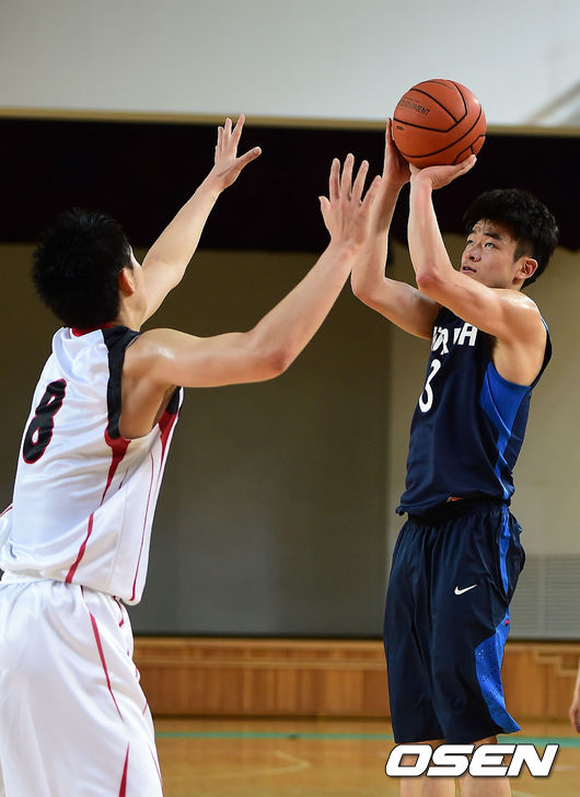 2쿼터 한국 배수용이 점프슛을 시도하고 있다.