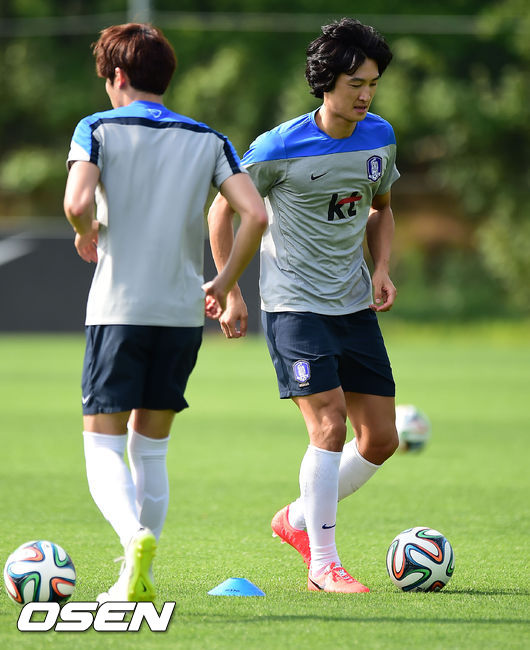 16일 오후 경기도 파주시 파주 NFC(대표팀 트레이닝센터)에서 브라질 월드컵에서 사상 첫 원정 8강에 도전하는 축구 국가대표팀이 훈련을 할 때 곽태휘가 드리블 연습을 하고 있다.