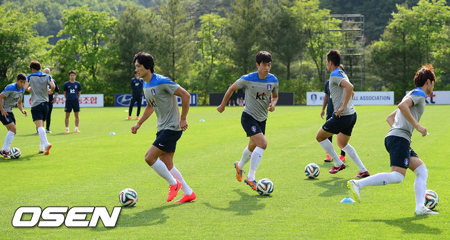 16일 오후 경기도 파주시 파주 NFC(대표팀 트레이닝센터)에서 브라질 월드컵에서 사상 첫 원정 8강에 도전하는 축구 국가대표팀이 훈련을 하고 있다.