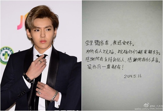 크리스는 16일 자신의 웨이보에 "당랑거철, 나는 잘지내고 있다. 모든 사람에게 축복이 있길 바라며, 여러분이 더 좋아지길 바란다. 저를 지지해주는 모든 분께 감사드리고 그런 의견에 감사하다. 우이판은 항상 여기 있을 것이다"라고 게재했다.
