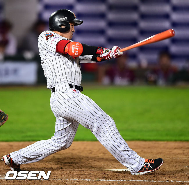 16일 오후 부산 사직구장에서 열린 2014 한국야쿠르트 세븐 프로야구 롯데 자이언츠와 넥센 히어로즈의 경기,5회말 1사 만루 롯데 손아섭이 1타점 적시타를 날리고 있다.