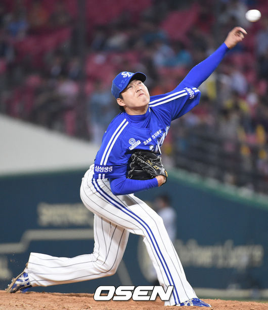16일 오후 광주 KIA 챔피언스필드에서 열린 '2014 한국야쿠르트 세븐 프로야구' KIA 타이거즈와 삼성 라이온즈 경기,7회말 1사 1,2루 상황에서 삼섬 차우찬이 선발 마틴에 이어 공을 뿌리고 있다.
