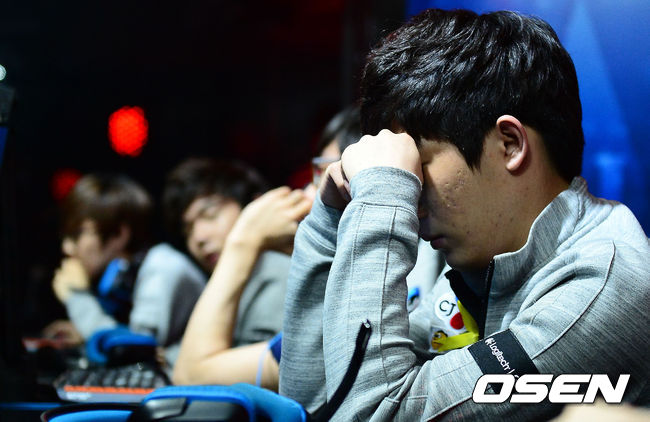 3세트에서 패한 CJ 블레이즈 '엠퍼러' 김진현이 아쉬워하고 있다.