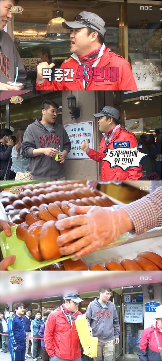 두 사람은 16일 방송된 MBC 예능프로그램 ‘사남일녀’에서 시내 유명한 빵집에서 단팥방 등을 사기 위해 1시간 동안 기다렸다. 이 빵집은 줄서서 빵을 사는 것으로 유명.