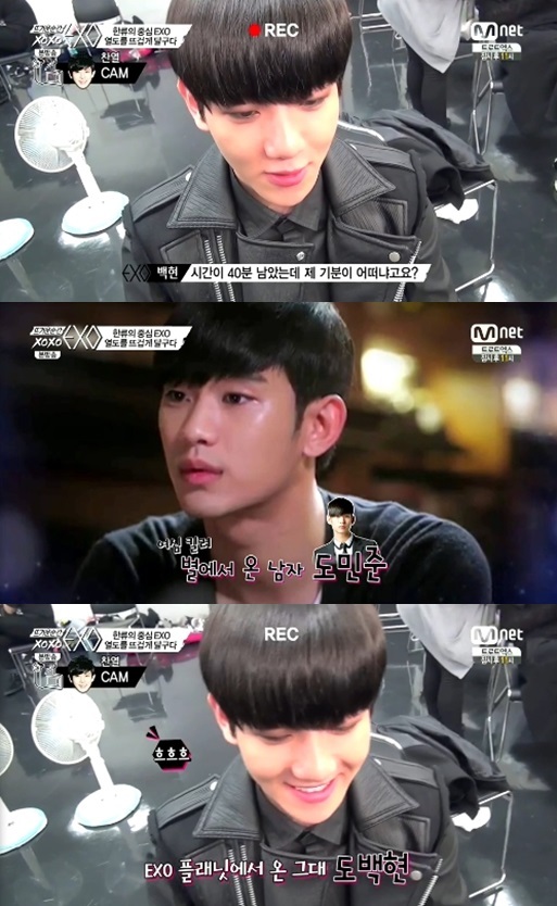 이날 백현은 대기실에서 일본 팬 이벤트 소감을 묻는 말에 "40분 남았는데, 기분이 어떠냐고요?"라고 '별에서 온 그대'의 도민준(김수현 분)의 대사를 패러디 해 웃음을 자아냈다.