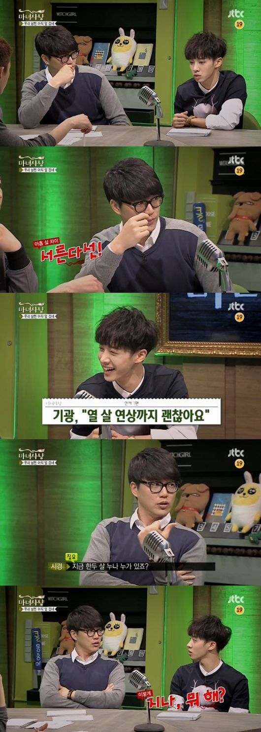 이에 ‘마녀사냥’ MC들은 이기광에게 연상과의 연애에 대한 생각을 물었다. 이기광은 “나이 차는 상관없다”며 열 살 연상인 서른 다섯 살까지 괜찮다고 말했다.