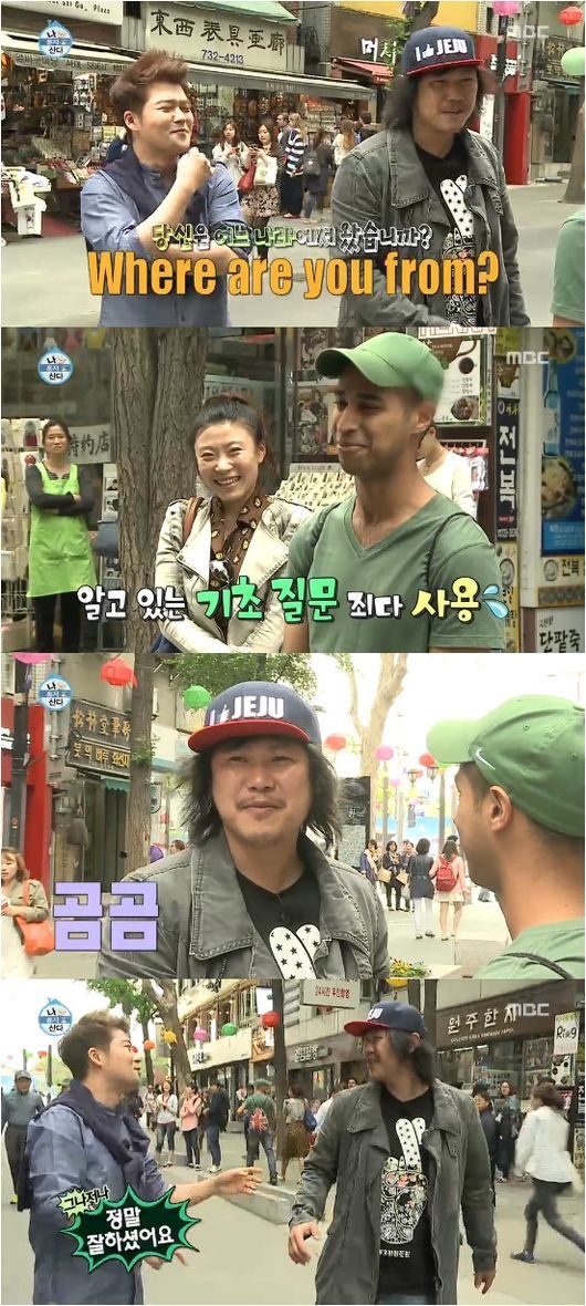 육중완은 기초 영어 대화를 더듬더듬 이어가더니 “I’m korean”을 “I’m korea”로 잘못 말하는 실수를 했다. 전현무는 “그 말은 내가 한국이라는 뜻”이라고 실수르 정정했다.
