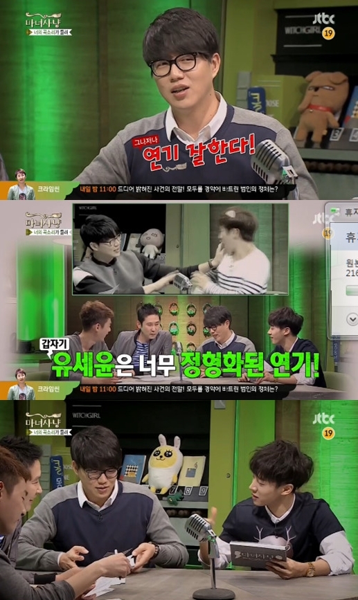 ‘마녀사냥’ 신동엽이 이기광과 유세윤을 비교, 유세윤의 연기를 디스해 웃음을 자아냈다.