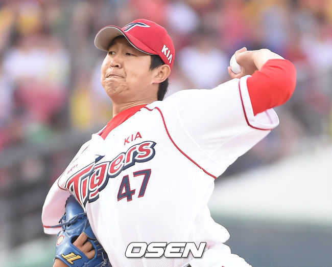 17일 오후 광주 KIA 챔피언스필드에서 열린 '2014 한국야쿠르트 세븐 프로야구' KIA 타이거즈와 삼성 라이온즈 경기,KIA 3회초 선발 송은범에 이어 박경태가 등판 공을 뿌리고 있다.