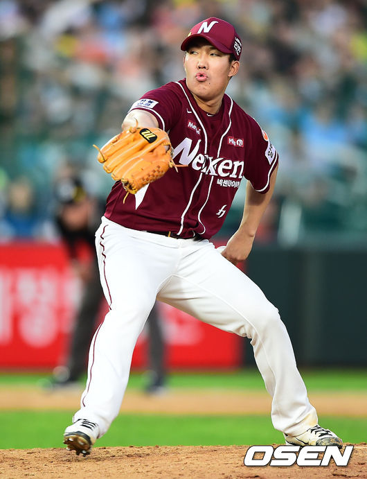 17일 오후 부산 사직구장에서 열린 2014 한국야쿠르트 세븐 프로야구 롯데 자이언츠와 넥센 히어로즈의 경기,6회말 넥센 선발투수 금민철이 역투하고 있다.