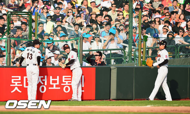 2회초에만 롯데는 실책 4개를 기록했고 넥센은 그 틈을 타 3-1 역전에 성공했다. 공수 교대 후 2회말. 강민호가 선두타자로 나서 초구에 큰 타구를 날렸다. 타구는 오른쪽으로 깊게 휘며 파울이 될 것 같았다. 그러나 넥센 우익수 유한준이 공을 잡은 뒤 자기 허리 높이의 펜스를 넘어 굴러떨어지는 호수비를 선보이며 아웃카운트를 만들었다.