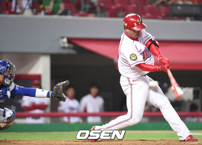 17일 오후 광주 KIA 챔피언스필드에서 열린 '2014 한국야쿠르트 세븐 프로야구' KIA 타이거즈와 삼성 라이온즈 경기,7회말 1사 1루 이범호 스윙 삼진아웃 처리되고 있다.