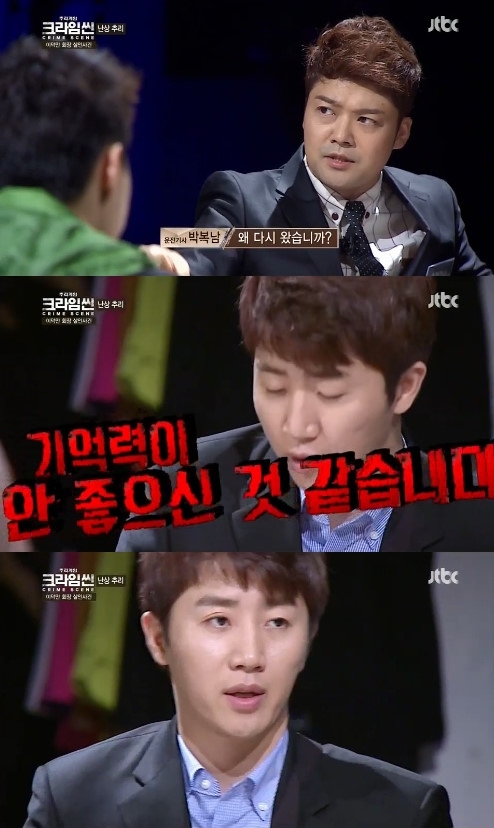 전현무는 17일 방송된 JTBC 예능프로그램 '크라임씬'에서 두 번째 결정적 단서인 CCTV를 보고 홍진호에게 왜 다시 집으로 돌아왔냐고 재차 확인했다. 이에 홍진호는 “기억력이 안 좋은 거 같다. 핸드폰을 찾으러 갔는데 사장은 이미 사망한 상태였다”고 말했다.