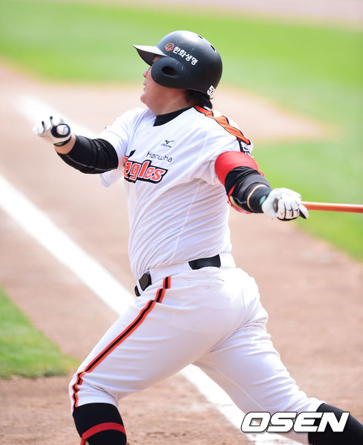 18일 오후 대전구장에서 열린 2014 한국야쿠르트 세븐 프로야구 한화 이글스와 SK 와이번스의 경기,1회말 1사 3루 한화 김태균이 역전 1타점 적시타를 날리고 있다.
