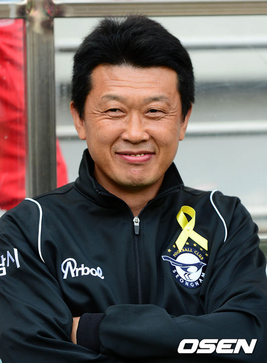 경기에 앞서 성남 이상윤 감독대행이 그라운드를 바라보고 있다.