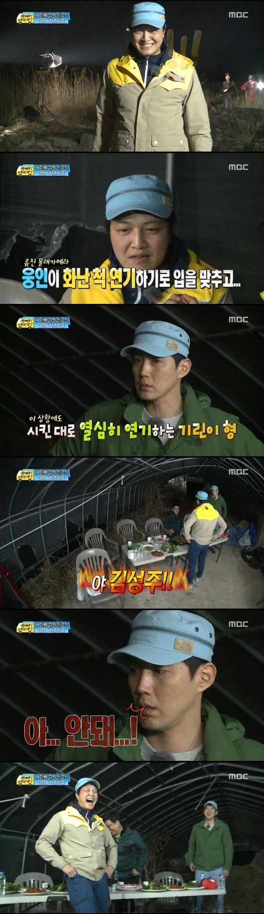 정웅인은 18일 오후 방송된 MBC 예능프로그램 '일밤-아빠!어디가?'(이하 '아빠어디가')에서 자신의 환영파티를 위해 기존 아빠들이 짠 몰래카메라에 속았다. 환영 파티 장소가 여러 번 바뀌며 여러번 헛걸음을 해야 했던 것.