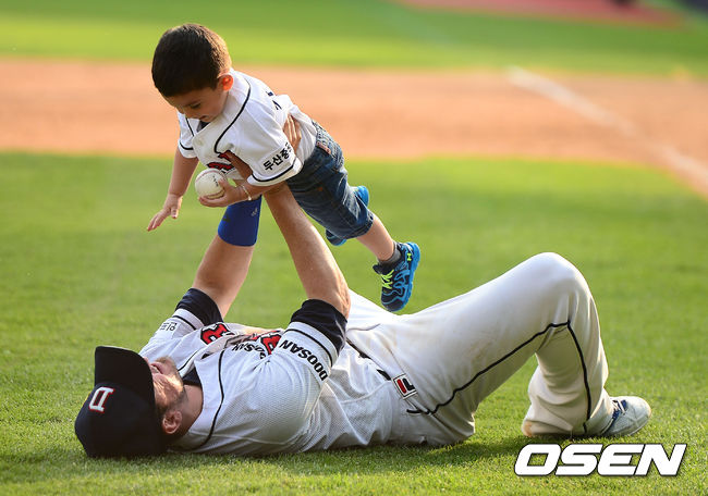 경기 종료 후 두산 칸투가 아이들과 그라운드에서 함께 놀고 있다./youngrae@osen.co.kr