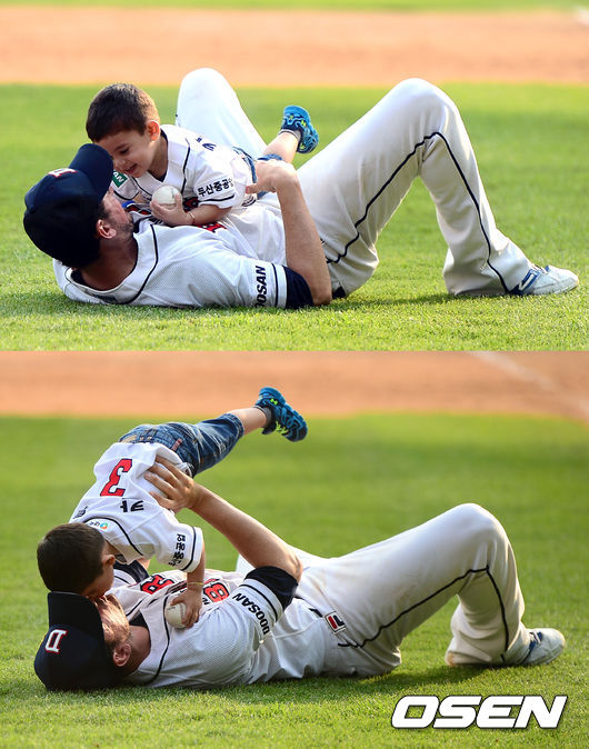 경기 종료 후 두산 칸투가 아이들과 그라운드에서 함께 놀고 있다./youngrae@osen.co.kr