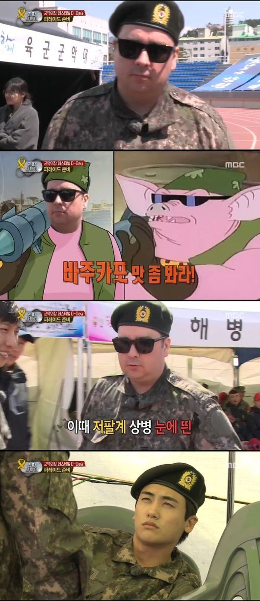 방송인 샘 해밍턴이 선글라스 하나로 '저팔계' 상병으로 완벽 변신했다.