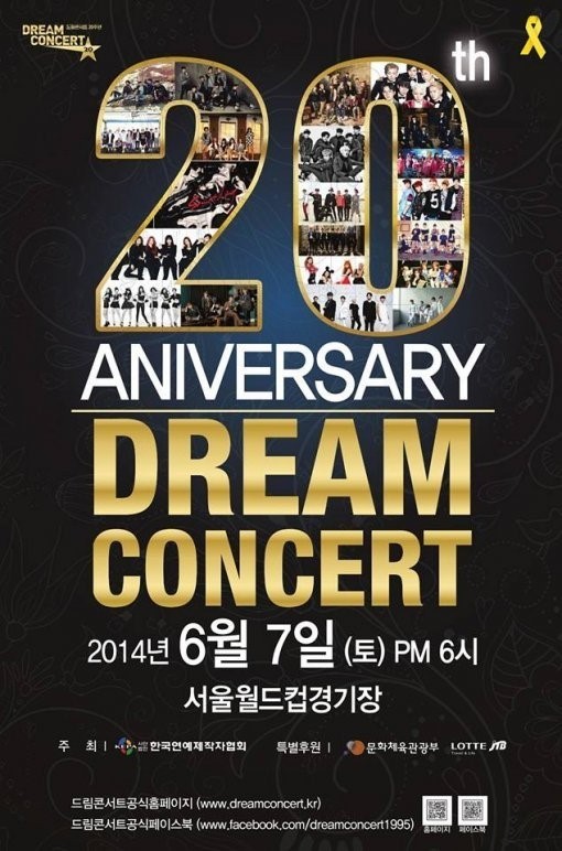 ‘제20회 힘내라 대한민국 2014 드림 콘서트’(이하 ‘드림 콘서트’)는 다음달 7일 서울 월드컵 경기장에서 열린다. 티켓은 19일 오후 8시에 오픈된다.