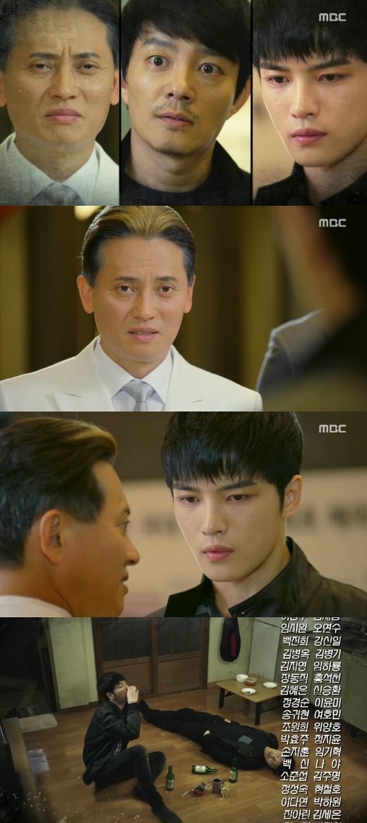 19일 오후 방송된 MBC 월화드라마 ‘트라이앵글’ 5회에는 성공을 위해 고복태(김병옥 분)에게 충성을 맹세하는 허영달(김재중 분)의 모습이 그려졌다.
