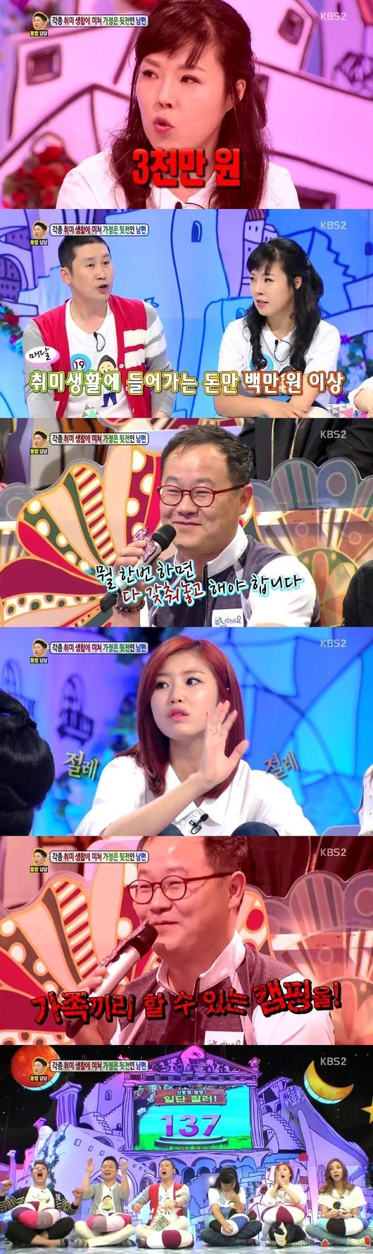 여성은 “남편 취미 생활 때문에 들인 돈이 3천이다. 한달 월급이 180인데 취미생활에 한 달에 100만원은 쓴다. 그 나머지로 내가 생활비를 쓰고 대출을 받는다”고 말했다. 한 달에 20~30만원으로 생활비를 쓰고 대출까지 받는다는 여성의 이야기에 MC들은 경악했다.