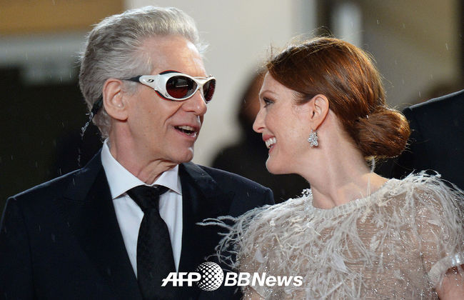 [OSEN=사진팀] 19일(현지시간) 프랑스 칸에서 세계 최고의 국제영화제인 '제 67회 칸영화제'가 열린 가운데 데이비드 크로넨버그 감독과 미국배우 줄리안 무어가 레드카펫 행사에 참석해 포즈를 취하고 있다.
