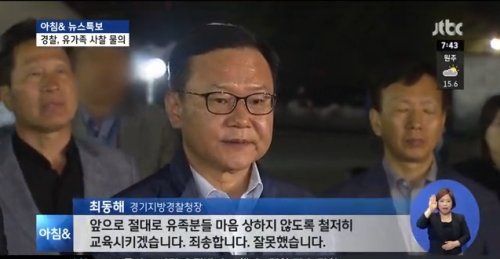 최 청장은 또한 유가족들의 질문에 신분을 부인한 점에 대해서는 "직원들이 순간적으로 대처를 잘 하지 못했다. 죄송하다"고 말했다.
