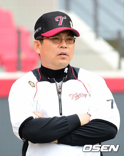 경기에 앞서 LG 양상문 감독이 KIA 선동렬 감독과 이야기를 나누고 있다.