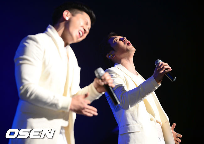 20일 오후 서울 방이동 올림픽공원 K-아트홀에서 진행된 플라이투더스카이 9집 '컨디뉴엄' 컴백 쇼케이스에서 브라이언과 환희가 멋진 무대를 선보이고 있다.