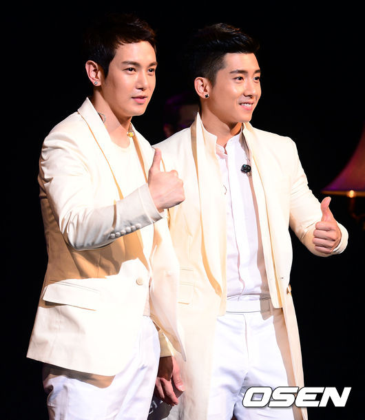 20일 오후 서울 방이동 올림픽공원 K-아트홀에서 진행된 플라이투더스카이 9집 '컨디뉴엄' 컴백 쇼케이스에서 브라이언과 환희가 포토타임을 갖고 있다.