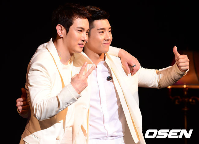 20일 오후 서울 방이동 올림픽공원 K-아트홀에서 진행된 플라이투더스카이 9집 '컨디뉴엄' 컴백 쇼케이스에서 브라이언과 환희가 포토타임을 갖고 있다.