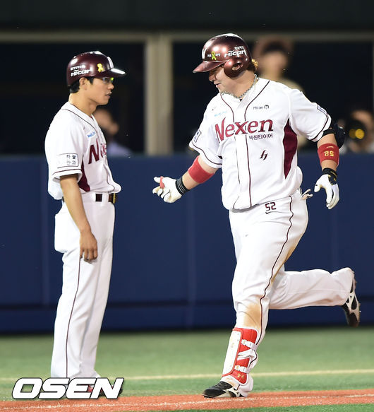 20일 오후 서울 목동구장에서 열린 ‘2014 한국야쿠르트 세븐 프로야구’ 넥센 히어로즈와 한화 이글스의 경기, 5회말 넥센 선두타자 박병호가 중월 솔로 홈런을 날린 후 그라운드를 돌고 있다.