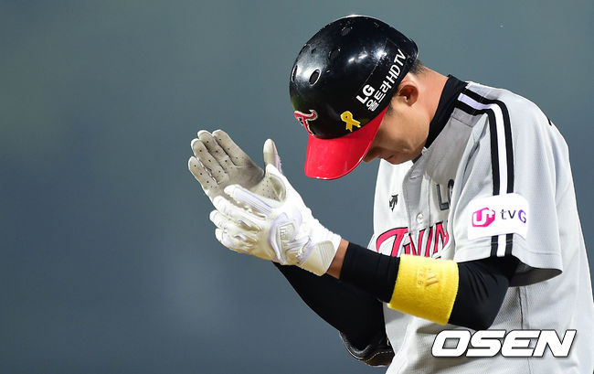 6회초 2사 1,2루에서 LG 김용의가 중전적시타를 치고 환호하고 있다.