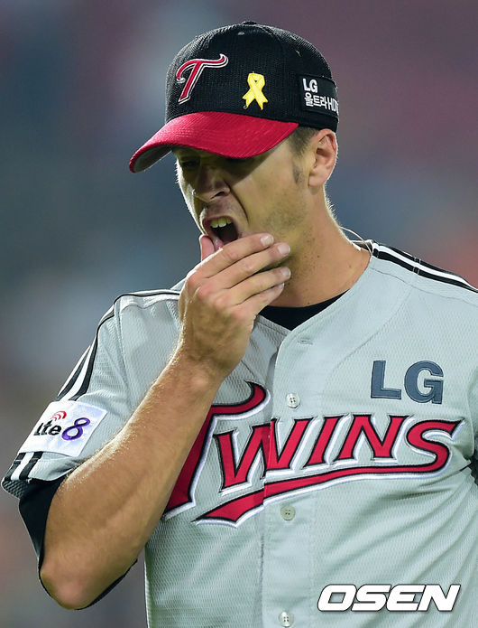 5회말 1사 만루에서 LG 티포드가 마운드를 내려가고 있다.